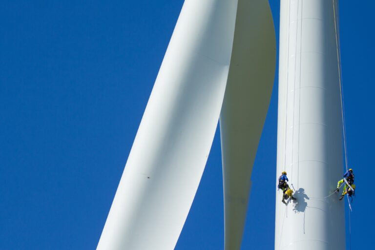 Grâce aux technologies et à l’expertise du Groupe Acrobatica, nous sommes en mesure d’intervenir de manière opportune, rapide et durable (lien page durabilité ?). En effet, nous accédons aux turbines à l’aide de cordes ou de nacelles spécialisées pour les opérations en hauteur, sans avoir à recourir à des véhicules lourds pour transporter du gros matériel, comme c’est normalement le cas, ce qui permet de réduire les émissions.